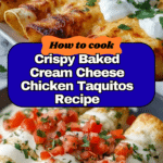 Baked Cream Cheese Chicken Taquitos are a crispy, flavorful treat perfect for a quick dinner or party snack. These easy-to-make taquitos combine creamy, cheesy chicken filling wrapped in tortillas and baked to golden perfection.