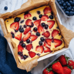 Baked yogurt is a simple, comforting dessert that’s creamy and lightly sweetened, perfect for a healthy treat. This recipe combines Greek yogurt with eggs and maple syrup, baked until set and topped with fresh berries for a burst of flavor.