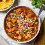 Keywords: BBQ Chicken Soup, smoky soup, chicken breast soup, pinto bean soup, easy weeknight dinner, hearty soup, barbecue flavors