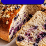 This Delicious Blueberry Oatmeal Sourdough Breakfast Bread is a wholesome and flavorful loaf perfect for a nourishing start to your day. Combining the natural tang of sourdough with hearty oats and sweet bursts of fresh blueberries, this bread is lightly sweetened with maple syrup or honey and enhanced with a touch of lemon zest. Slowly fermented and baked in a Dutch oven, it delivers a moist crumb and a crisp, golden crust.