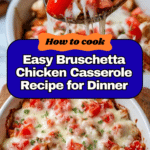 This Bruschetta Chicken Casserole combines the classic flavors of Italian bruschetta with tender, golden chicken breasts baked to perfection under a bubbly layer of mozzarella cheese. Juicy Roma tomatoes, garlic, oregano, and a drizzle of balsamic vinegar create a savory and vibrant topping, while fresh basil adds a fragrant finishing touch. It’s an easy, comforting, and flavorful baked dish perfect for a weeknight meal.