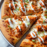 Keywords: Buffalo Chicken Pizza, homemade pizza, buffalo sauce, ranch cream cheese, mozzarella pizza, spicy chicken pizza, easy pizza recipe