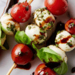 Keywords: Caprese bites, mozzarella appetizers, Italian appetizer, balsamic glaze, cherry tomato snacks, easy party food