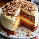 Keywords: carrot cake cheesecake, carrot cake, cheesecake, layered dessert, cream cheese dessert, spiced carrot cake, creamy cheesecake