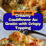 This Cauliflower Au Gratin recipe combines tender roasted broccoli and cauliflower florets smothered in a creamy, cheesy white cheddar sauce, topped with a crunchy, seasoned Ritz cracker crust. It’s a comforting and flavorful side dish perfect for dinners or special occasions.