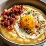 A comforting Southern classic, Cheesy Grits with Fried Egg offers creamy, cheesy grits topped with perfectly fried eggs featuring runny yolks and crispy edges. This dish combines smooth, rich grits cooked with butter and cheese alongside savory fried eggs seasoned with black pepper, making it an ideal hearty breakfast, brunch, or light dinner option.