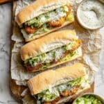 Chicken Caesar Sandwiches bring the classic flavors of Caesar salad into a handheld treat. Crispy breaded chicken cutlets pair perfectly with creamy Caesar dressing and fresh romaine on toasted hoagie rolls. This easy recipe is perfect for a satisfying lunch or quick dinner.