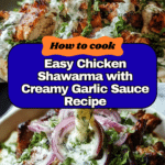 Chicken shawarma is a flavorful, spiced Middle Eastern dish that’s perfect for a quick weeknight dinner or casual gathering. Paired with a creamy garlic sauce, it’s a delicious meal that can be served with pita and fresh vegetables for a satisfying and wholesome experience.
