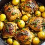 Chicken Vesuvio is a classic Italian-American dish featuring crispy roasted chicken and tender potatoes in a garlicky white wine sauce. This comforting meal combines bold flavors and simple ingredients for a delicious weeknight dinner or special occasion.