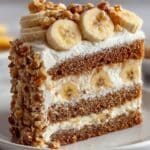 This Classic Banana Walnut Cake with Cream Cheese Frosting is a moist, flavorful dessert featuring ripe bananas and toasted walnuts, topped with a rich and creamy frosting. Perfect for any occasion, this cake combines the warm spices of cinnamon with a tender crumb, enhanced by the crunch of toasted walnuts and the smooth sweetness of cream cheese icing.