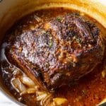Keywords: French onion pot roast, braised chuck roast, caramelized onions, slow cooked beef, comfort food, hearty dinner