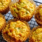 These Cottage Cheese Muffins are a high-protein, savory snack or breakfast option featuring shredded zucchini, creamy cottage cheese, and a blend of einkorn and almond flours. They are moist, flavorful, and contain a Mexican cheese blend for added taste. Perfect for those seeking a nutritious and satisfying muffin with a protein boost.