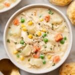 Keywords: chicken pot pie soup, creamy chicken soup, comfort food, hearty soup, easy dinner, fall soup, one pot meal