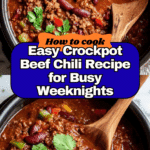 A hearty and flavorful Crockpot Beef Chili recipe perfect for an easy, slow-cooked meal. Tender ground beef simmered with beans, tomatoes, and bold spices creates a comforting dish that’s great for any day of the week.