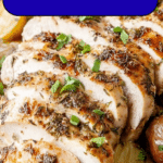 A simple and flavorful Crockpot Turkey Tenderloin recipe paired with tender roasted baby creamer potatoes, seasoned with a blend of herbs and spices for a convenient one-pot meal.