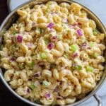 Keywords: deviled egg pasta salad, macaroni salad, Greek yogurt pasta salad, picnic recipes, easy pasta salad