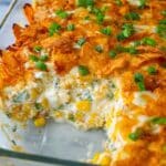 A delightful and creamy Doritos Casserole with shredded chicken, cheese, and a crunchy Doritos topping baked to golden perfection. This easy-to-make casserole combines rich cream cheese, savory chicken soup, fresh green onions, sweet corn, and a blend of Mexican cheeses for a comforting and flavorful meal perfect for family dinners or potlucks.