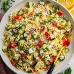 Keywords: lemon orzo salad, feta orzo salad, Mediterranean salad, easy pasta salad, summer salad, healthy salad