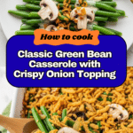 Keywords: green bean casserole, vegetable casserole, mushroom casserole, holiday side dish, baked green beans, comfort food