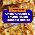 This Gruyère & Thyme Italian Focaccia is a fragrant, cheesy bread with a golden, crispy crust and soft, airy crumb. Infused with fresh thyme and rich melted Gruyère, it’s perfect as a snack, appetizer, or alongside your favorite meal.