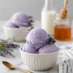 This Honey Lavender Ice Cream is a creamy, delicately floral frozen treat made with real honey and dried culinary lavender. Infused with soothing lavender flavor and sweetened naturally with raw honey, it offers a unique and elegant twist on classic homemade ice cream. The custard base is gently cooked on the stovetop to create a rich texture, then churned to perfection in an ice cream maker.