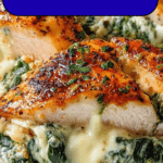 This copycat recipe for Ruth’s Chris Stuffed Chicken features juicy boneless chicken breasts stuffed with a creamy blend of spinach, cream cheese, mozzarella, Parmesan, and garlic, seasoned with Italian herbs. The chicken is first seared to golden perfection on the stovetop and then baked to lock in flavors, resulting in a rich, satisfying entrée perfect for a special dinner or cozy night in.