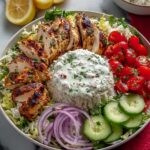 A vibrant and flavorful Juicy Mediterranean Chicken Bowl featuring marinated chicken cooked to perfection, served over fluffy rice with fresh vegetables, crumbled feta, and a refreshing homemade tzatziki sauce. This recipe balances zesty lemon, herbs, and garlic for an authentic Mediterranean taste, ideal for a wholesome and satisfying meal.