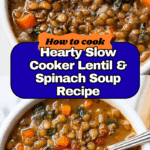Keywords: lentil soup, spinach soup, slow cooker soup, vegetarian soup, healthy soup, lentils, comfort food, easy soup recipe