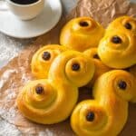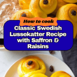 Lussekatter are traditional Swedish saffron buns, soft and slightly sweet, perfect for festive occasions like St. Lucia’s Day. These golden buns are shaped into distinctive ‘S’ figures, studded with raisins, and have a fragrant saffron flavor that makes them uniquely delicious.