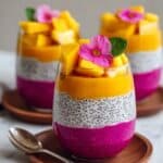 This Mango and Dragon Fruit Chia Pudding is a vibrant and healthy parfait perfect for breakfast or a refreshing snack. Combining creamy chia seeds soaked in coconut milk with the tropical sweetness of Alphonso mango and the exotic flavor of pink dragon fruit, this recipe offers a delightful balance of texture and taste. Optional layers of vanilla coconut yogurt add richness, while chopped mango topping provides a fresh burst of flavor.