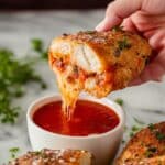 - Cool and Serve: Transfer strombolis to a wire rack to cool for 5 minutes. Slice into 2-inch pieces and serve warm with pizza sauce for dipping.