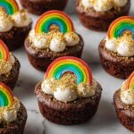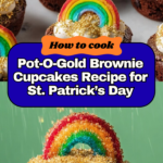 Pot-O-Gold Brownie Cupcakes are a festive twist on classic brownies, perfect for celebrations or a fun treat. These bite-sized cupcakes feature a gooey brownie base shaped like a cup and decorated with whipped cream and a colorful candy rainbow.