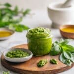 A vibrant and fresh Spinach Pesto recipe that combines fresh spinach, basil, garlic, pine nuts, and Parmesan cheese blended into a creamy, flavorful sauce. Perfect for tossing with pasta, spreading on sandwiches, or drizzling over roasted vegetables. Ready in just 10 minutes and easily customizable with different nuts.