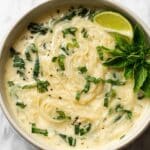 This Quick Thai Green Curry Soup is a vibrant and aromatic dish perfect for a speedy yet satisfying meal. Featuring fragrant Thai green curry paste, creamy coconut milk, and fresh herbs, this soup is infused with rich flavors and a subtle kick of spice. Vermicelli noodles add a delightful texture, making it a complete and comforting bowl of goodness that’s easy to prepare on the stovetop in under 30 minutes.
