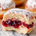 Delight in these Raspberry Filled Donut Muffins, a perfect blend of fluffy, moist cake with a sweet raspberry jam center. Topped with a buttery powdered sugar coating, these muffins offer a classic donut flavor in a convenient, bite-sized treat ideal for breakfast or an indulgent snack.