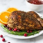 Keywords: oven roasted turkey breast, roasted turkey, holiday turkey recipe, easy turkey breast, herb seasoned turkey