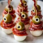 These Skewered Salami Eyeballs are a spooky and fun appetizer perfect for Halloween parties. Combining creamy mozzarella with savory pepperoni and olive “eyes,” they’re both visually striking and delicious. Easy to assemble, they’re sure to impress your guests.