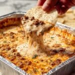 Stir the dip regularly while melting and avoid overheating. Adding cream cheese helps stabilize the mixture, and incorporating liquid slowly keeps it smooth and creamy.