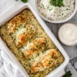 This smothered cheesy sour cream chicken is a comforting and flavorful dish that’s easy to prepare. Tender chicken breasts are baked under a creamy, cheesy sauce with Italian herbs, creating a rich and satisfying meal perfect for any night of the week.