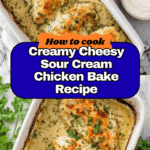 This Smothered Cheesy Sour Cream Chicken recipe features tender, juicy chicken breasts baked in a creamy, cheesy sauce made with sour cream, mozzarella, Parmesan, and flavorful herbs. Perfect for a comforting weeknight dinner, it’s baked to perfection and served with a fresh parsley garnish to brighten each bite.