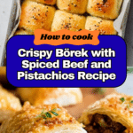 This Börek with spiced beef and pistachios is a deliciously flaky pastry filled with a fragrant, savory mixture. Combining tender minced beef, crunchy pistachios, and warm spices, it makes a perfect snack or light meal. The crisp filo layers with a hint of yogurt create an irresistible texture.