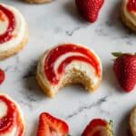 These Strawberry Cheesecake Cookies combine the creamy richness of cheesecake with the sweet tartness of strawberry jam, all in a soft, buttery cookie. Perfectly tender with a delightful swirl of vibrant strawberry, these cookies are an irresistible treat for any occasion.