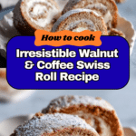 This Walnut & Coffee Swiss Roll is a delightful dessert featuring a light, fluffy coffee-infused sponge cake rolled with a creamy mascarpone and whipped cream filling, studded with crunchy walnuts. The espresso flavor combined with the nutty texture creates a sophisticated treat perfect for coffee lovers and dessert enthusiasts alike.